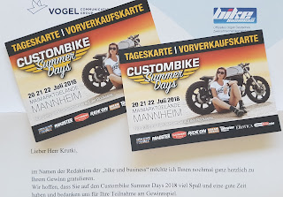Ich habe bei bike und business zwei Karten für die Custombike Summer Days gewonnen. Die Messe findet vom 20. bis 22. Juli 2018 auf dem Mannheimer Maimarktgelände statt. Darüber lässt sich sicherlich hier im Blog berichten.
